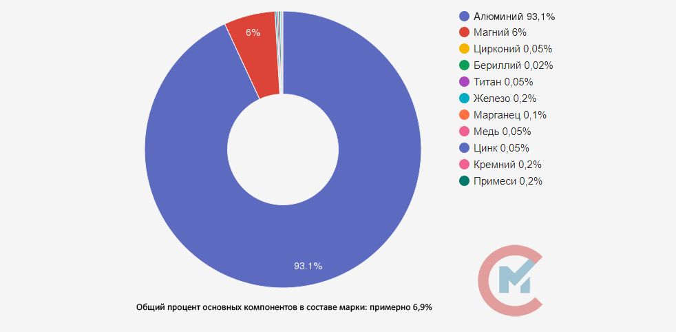 В соответствии с ГОСТ 1583-93 процентное содержание химических элементов в АЛ23-1: