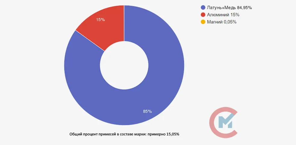 Согласно ГОСТ 5188-49, общая доля нормируемых примесей в сплаве марки ЦАМ15 должна составлять не более 15,05%.