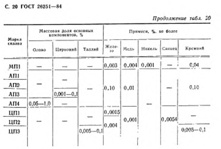 Состав компонентов и добавок должен соответствовать ГОСТ 26251-84 и допускается добавление примесей не более 0,0015%.