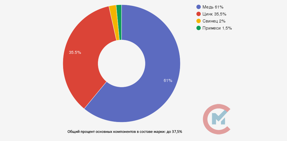 Маркировка подразумевает наличие цинка с содержанием 40%, свинца, значение которого варьируется от 0,8 до 2,0%. За счет этого материал может иметь и другое название – латунь свинцовая. Кроме этого, маленькая буква «д» указывает на способ применения литья, который осуществляется под давлением. Количество меди в данном случае имеет высокий процент содержания – от 58,0 до 61,0. В числе примесей наибольший процент принадлежит никелю (1), а общая сумма их включения заключена в 1,5%.